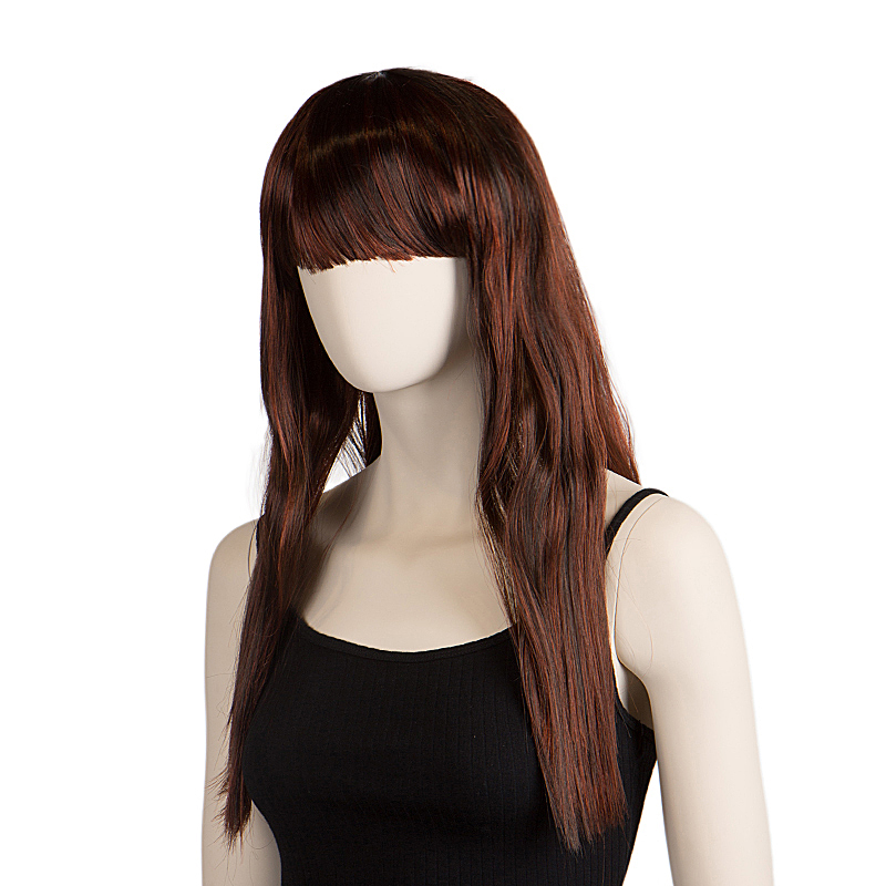 Περούκα γυναικεία για κούκλα βιτρίνας, πλενόμενη, με δίχτυ στην εσωτερική πλευρά, χρώματος καστανό με κόκκινες ανταύγειες brown with red highlights, μήκος μακρύ κάτω από τον ώμο, χτένισμα ίσιο με αφέλια.